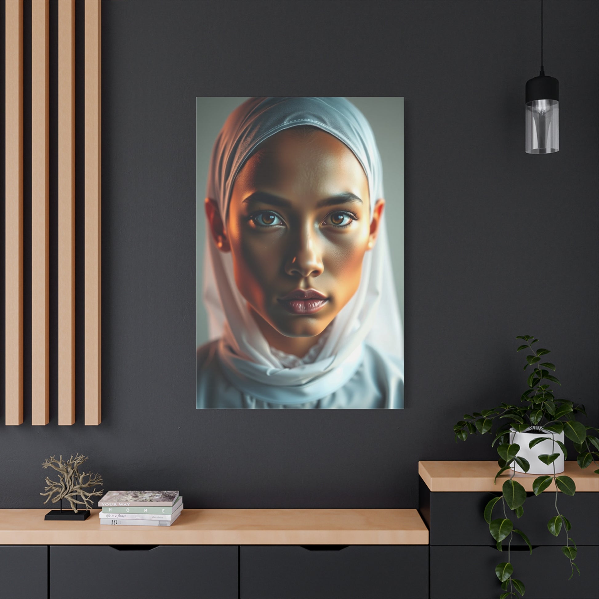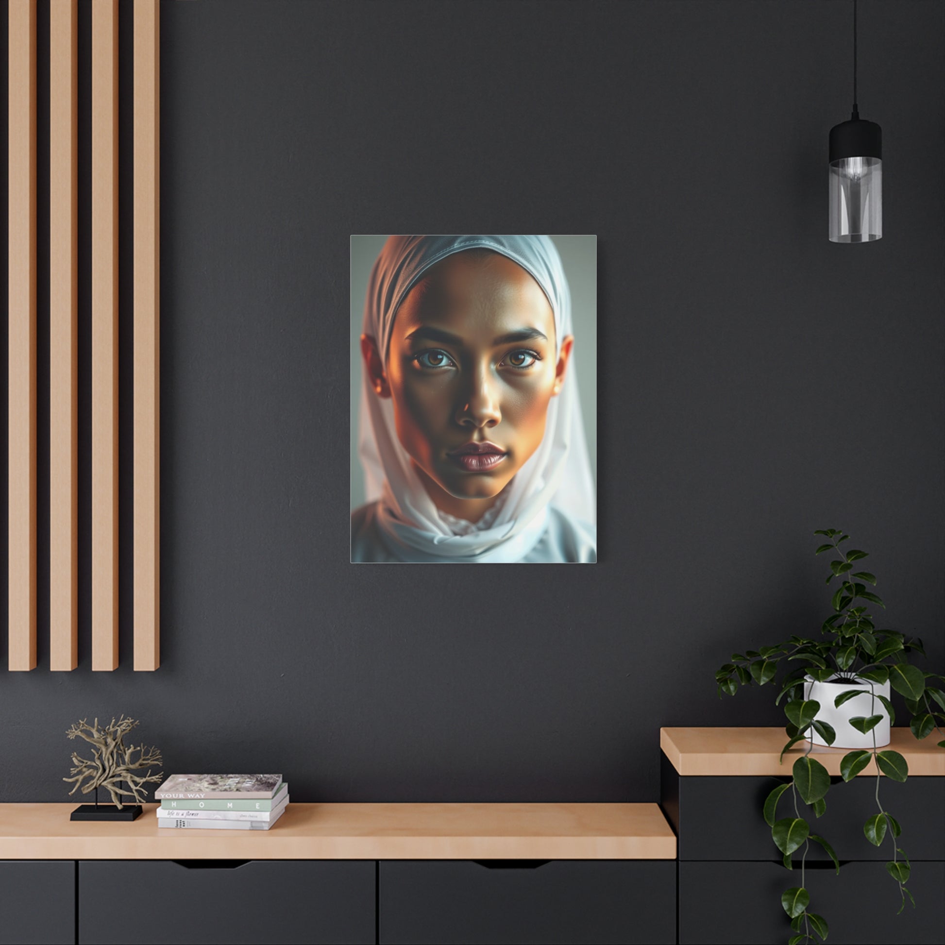 - Materials: cotton and polyester composite (canvas), pine wood (frame)
