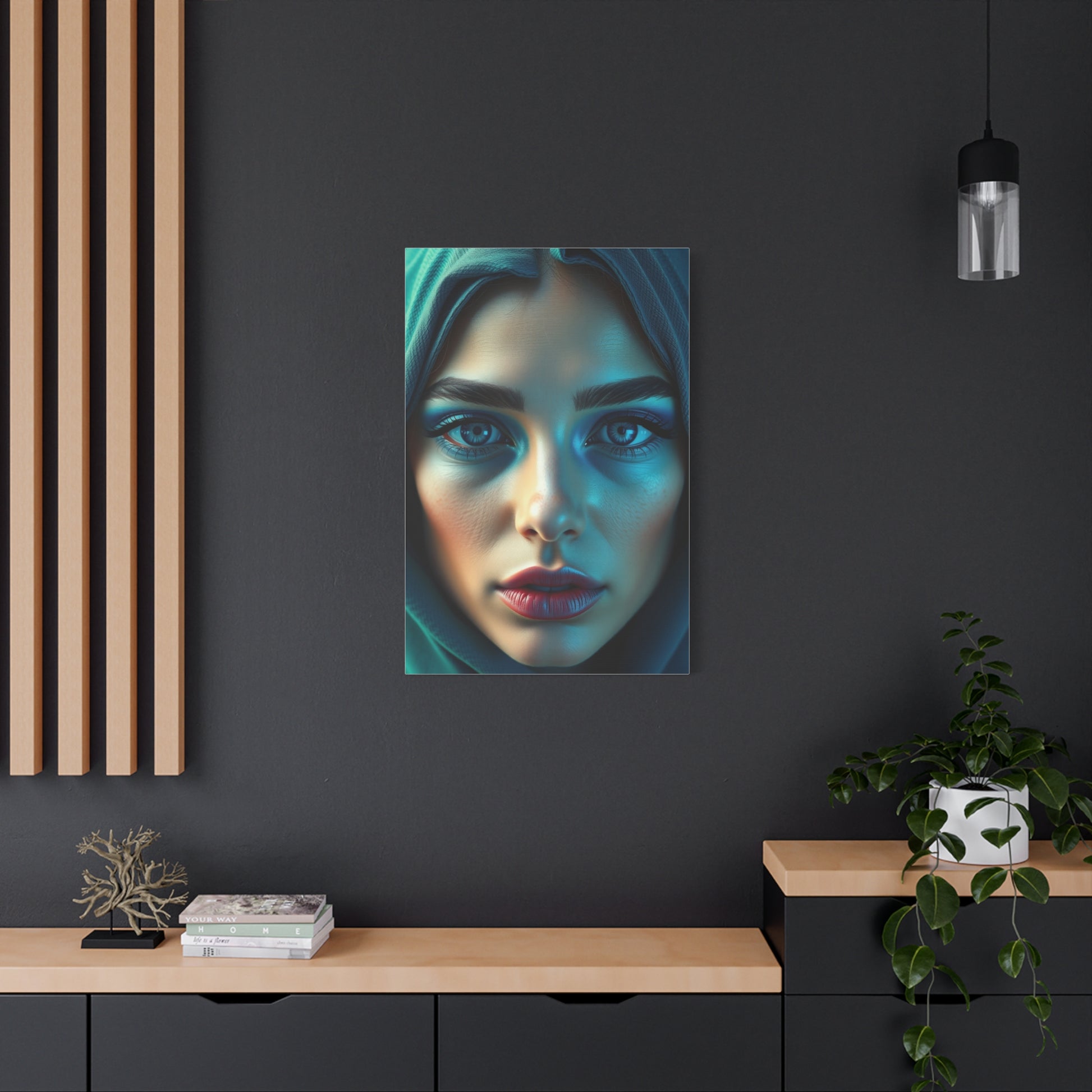 - Materials: cotton and polyester composite (canvas), pine wood (frame)