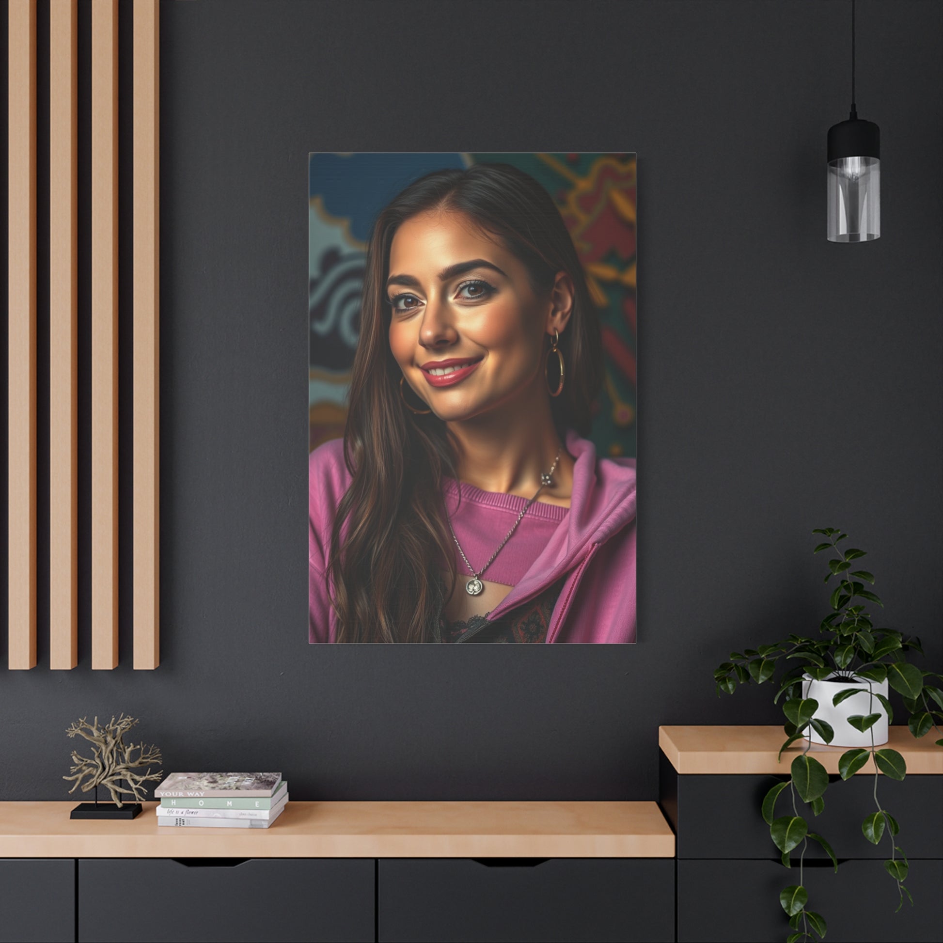 - Materials: cotton and polyester composite (canvas), pine wood (frame)