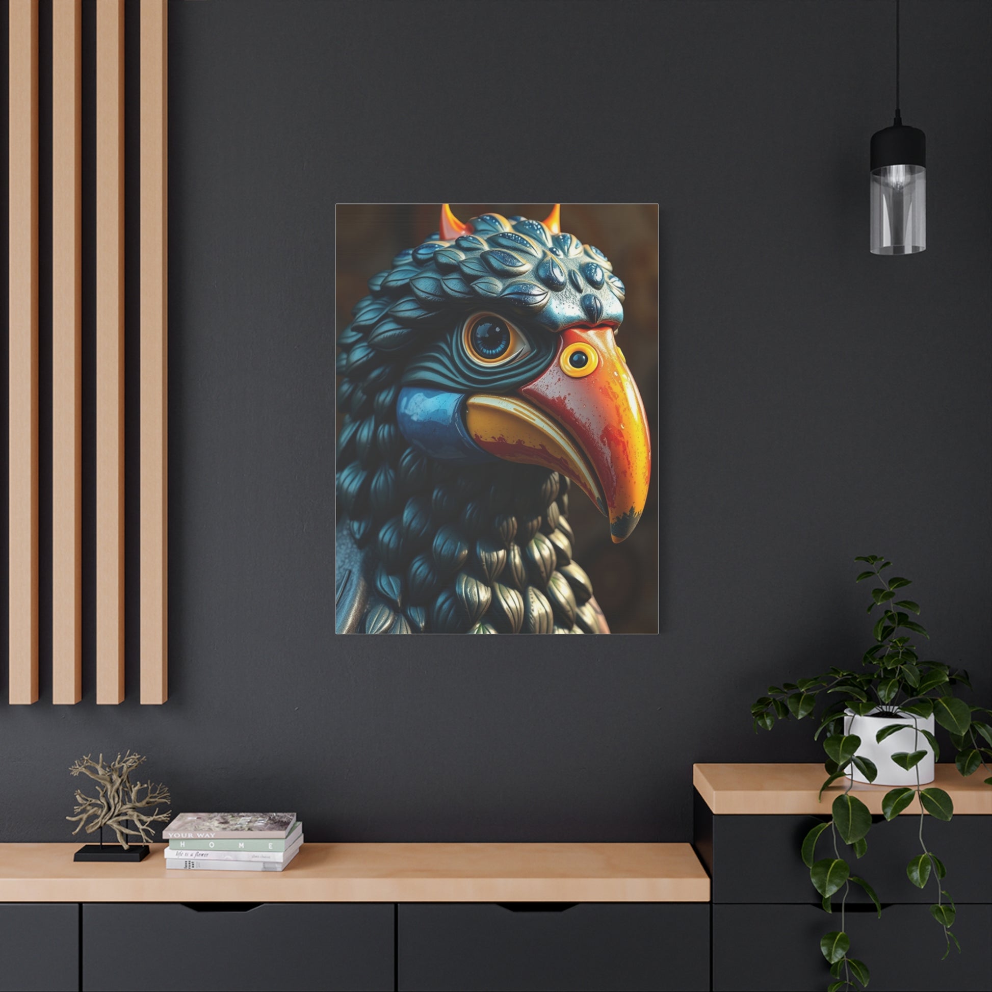 - Materials: cotton and polyester composite (canvas), pine wood (frame)