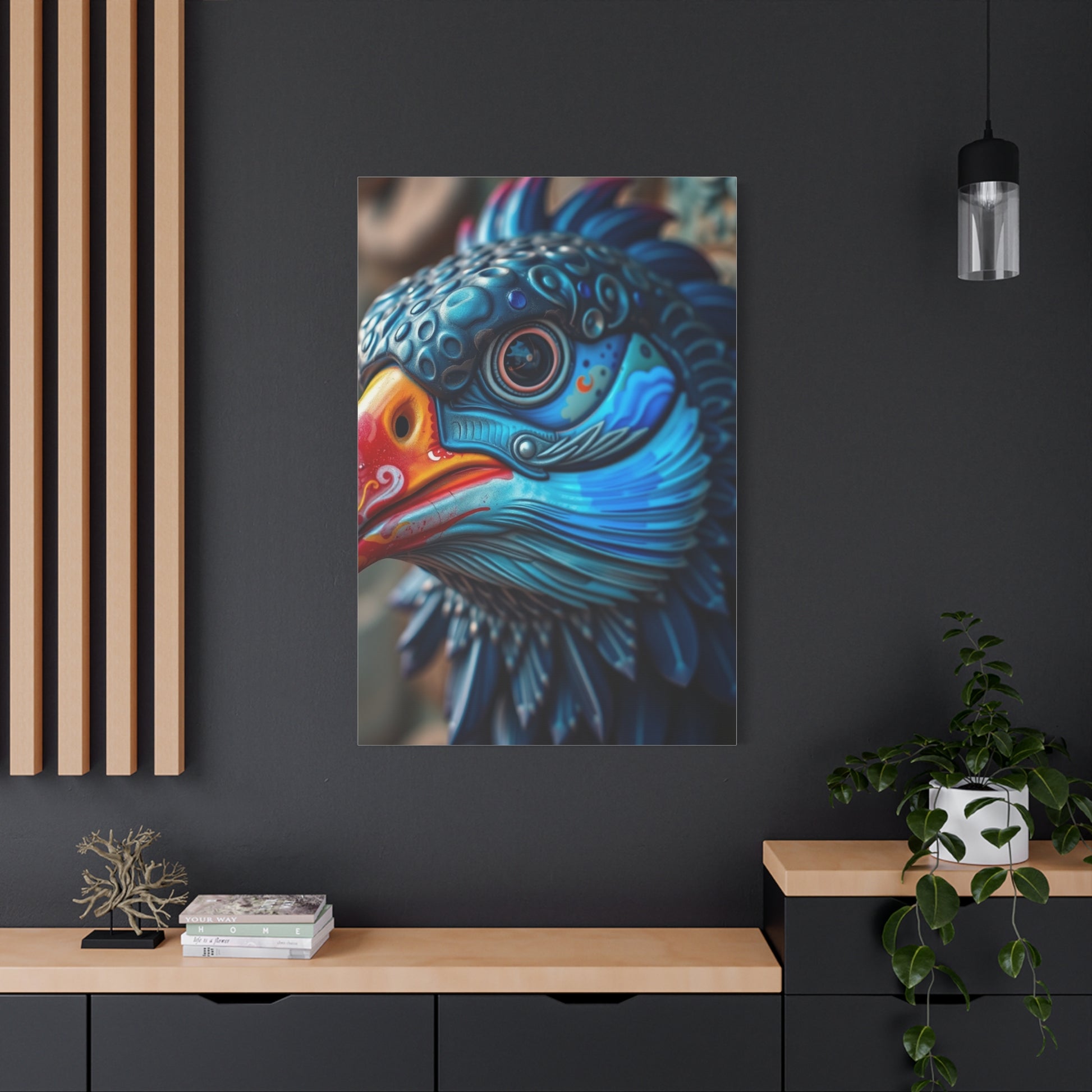 - Materials: cotton and polyester composite (canvas), pine wood (frame)