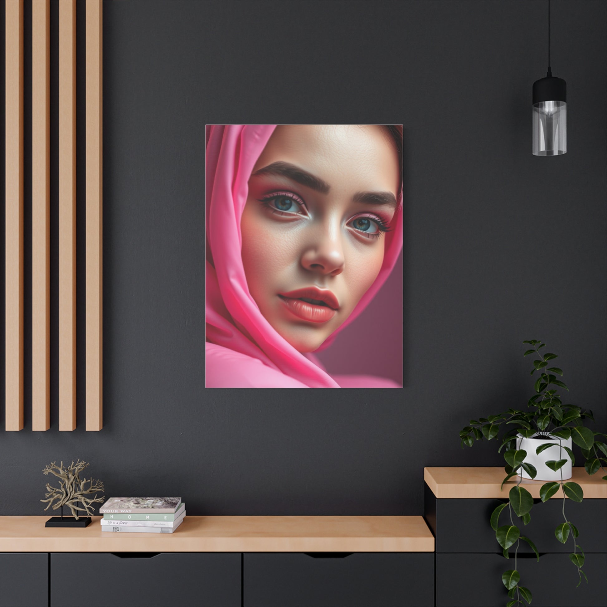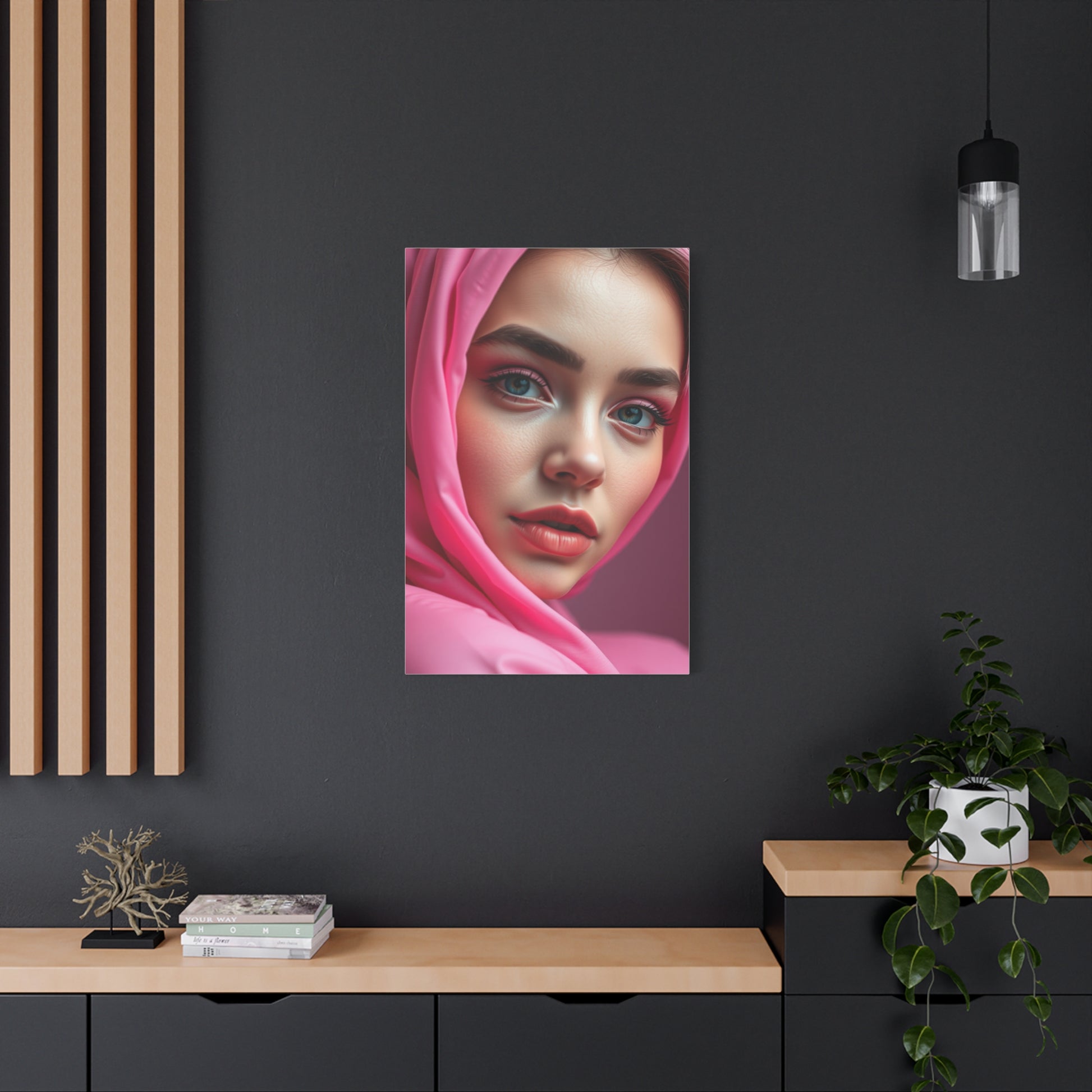- Materials: cotton and polyester composite (canvas), pine wood (frame)