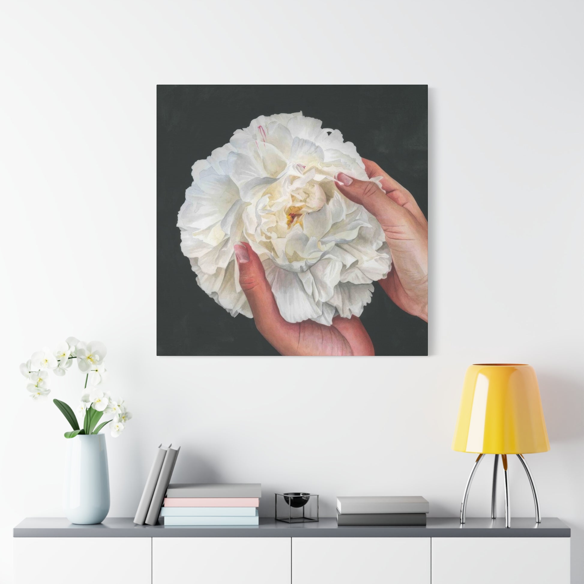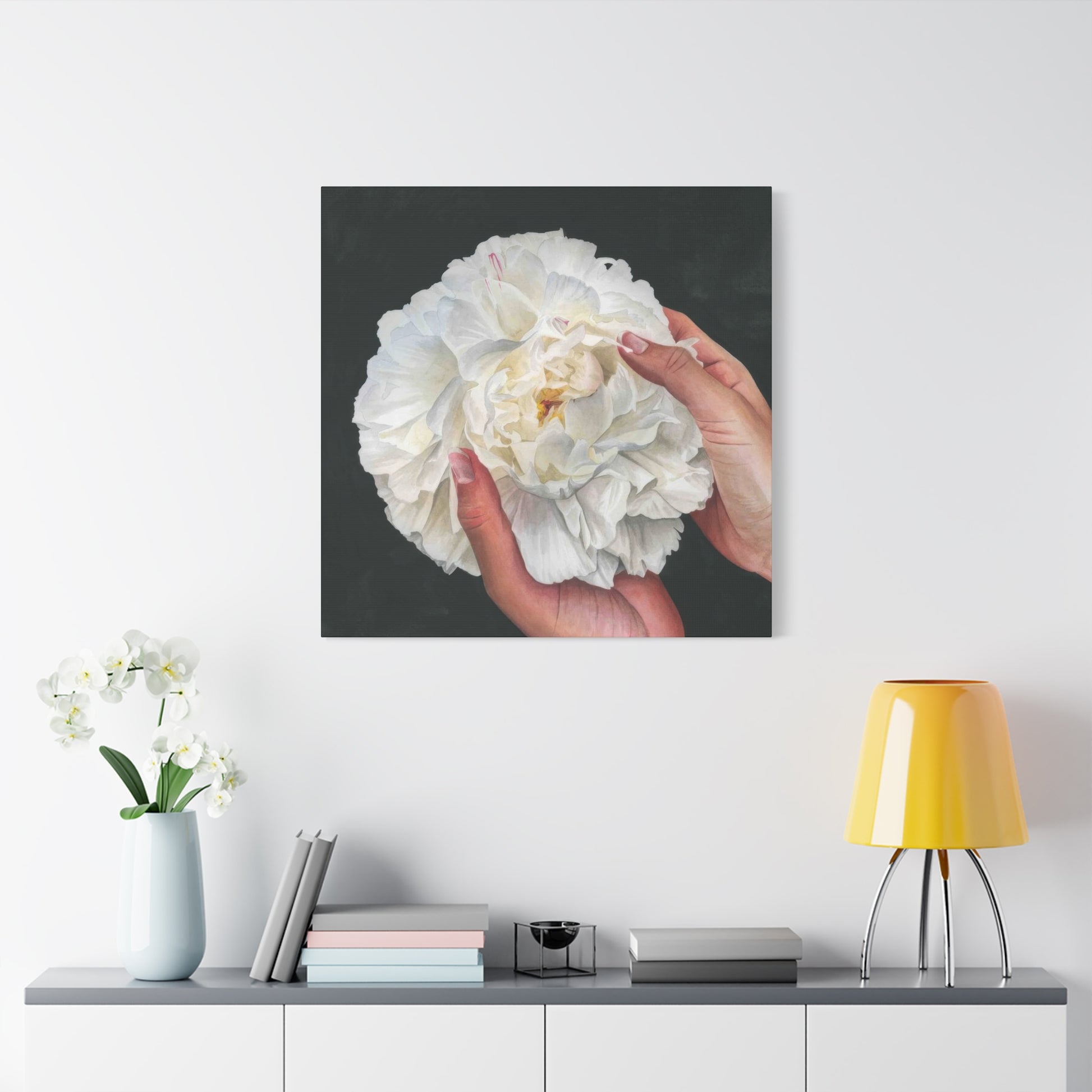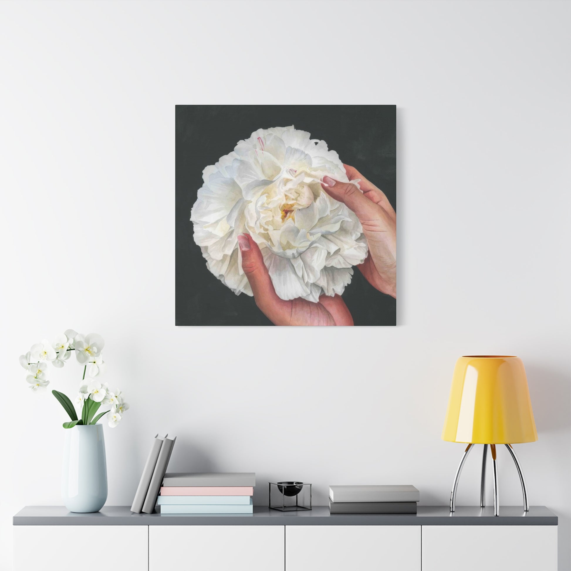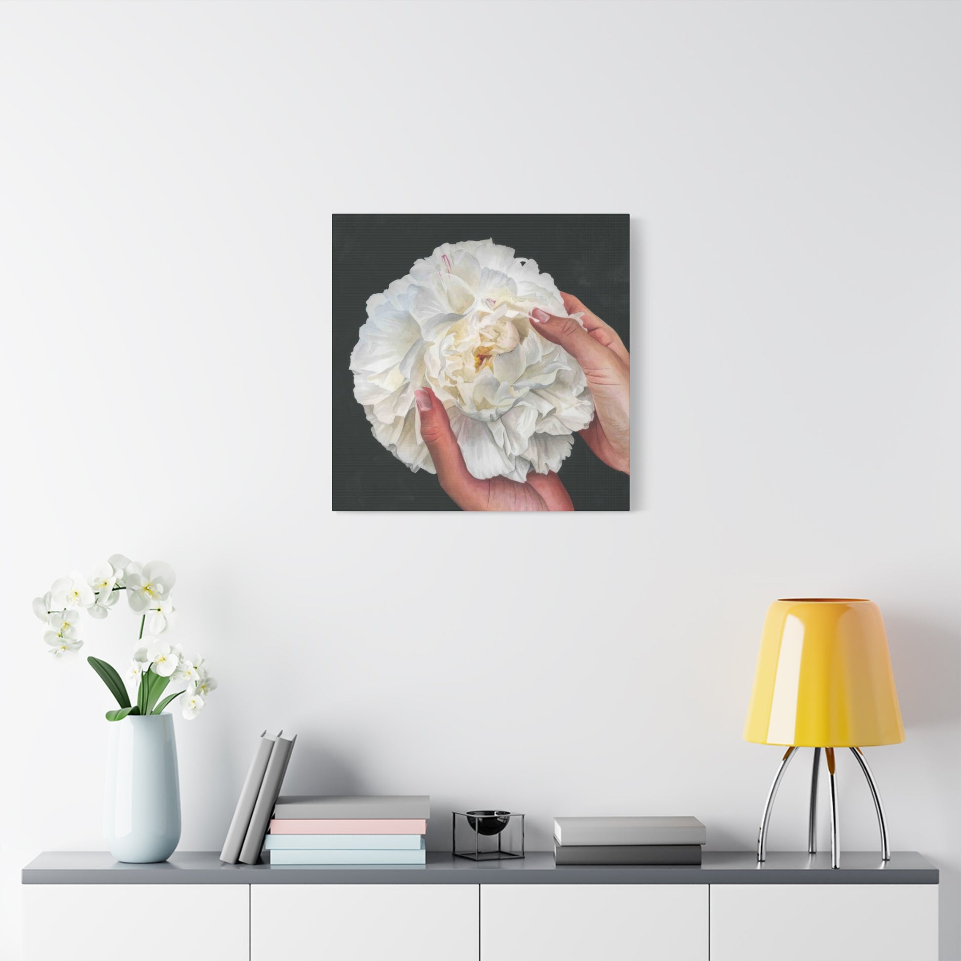 Grace Popp Holding White Flower Wall Art & Canvas Prints