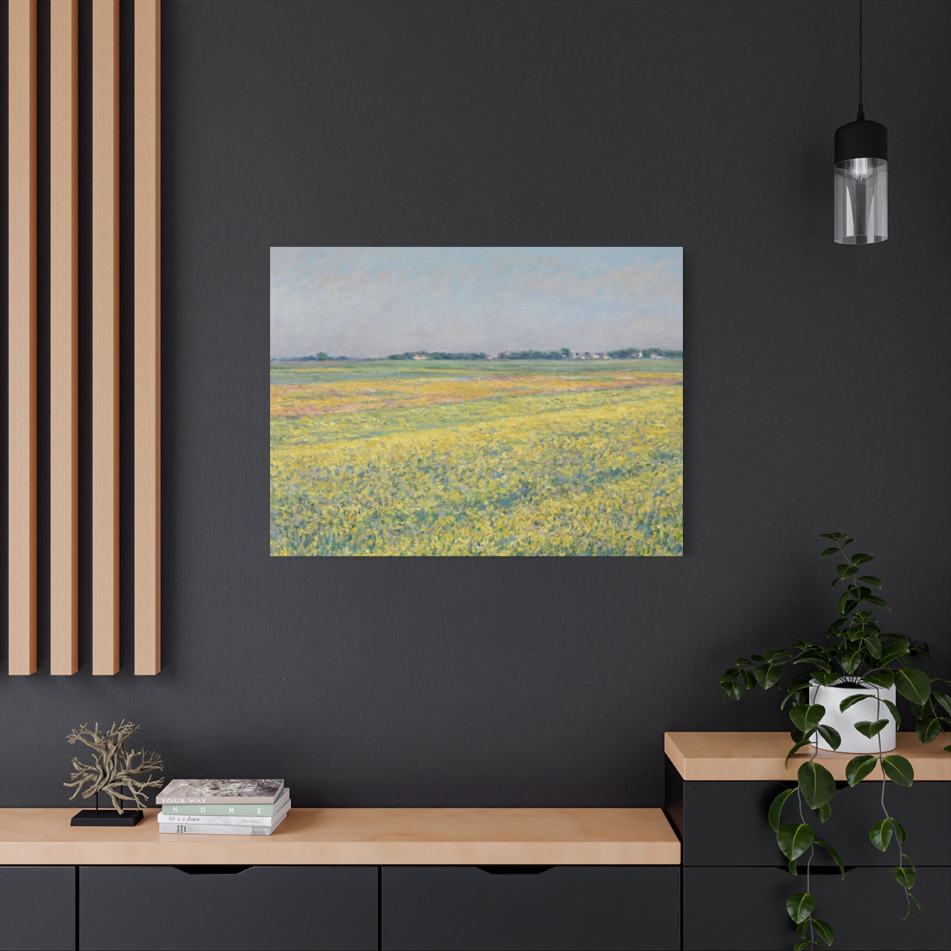 .: Materials: cotton and polyester composite (canvas), pine wood (frame)