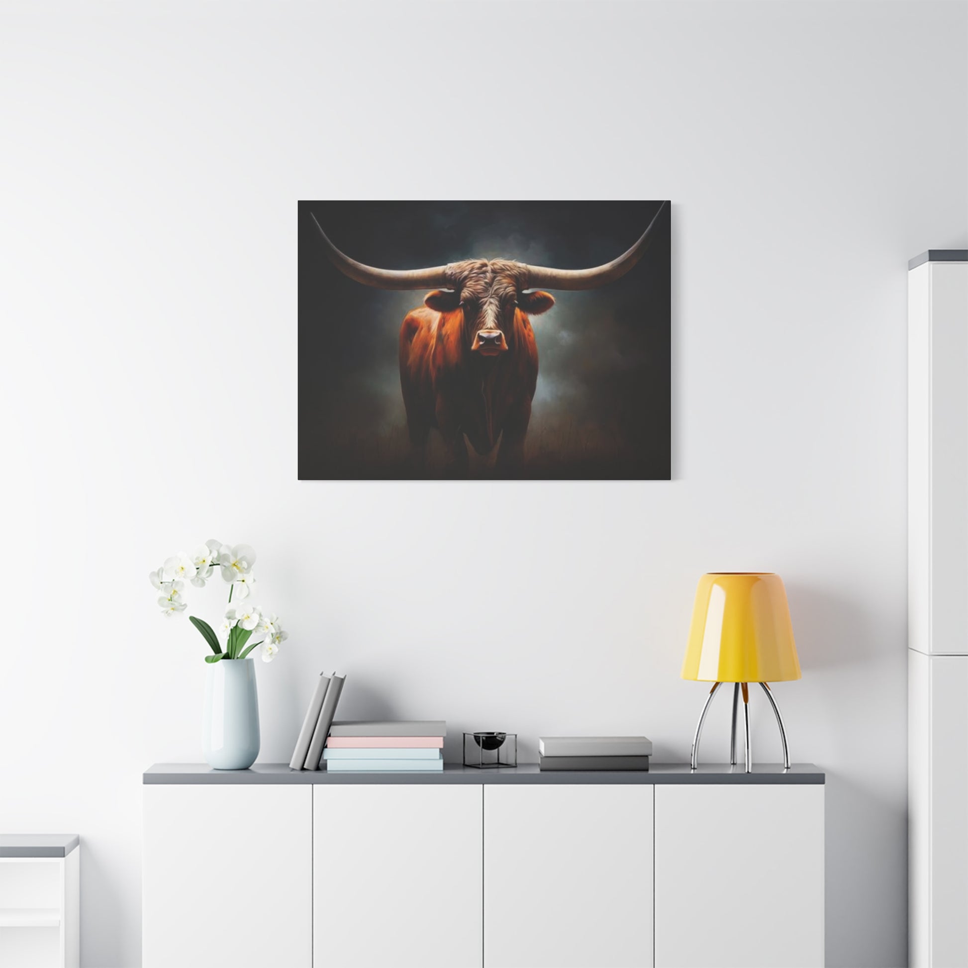 Hairy Bull Straight Long Horns Wall Art & Canvas Prints