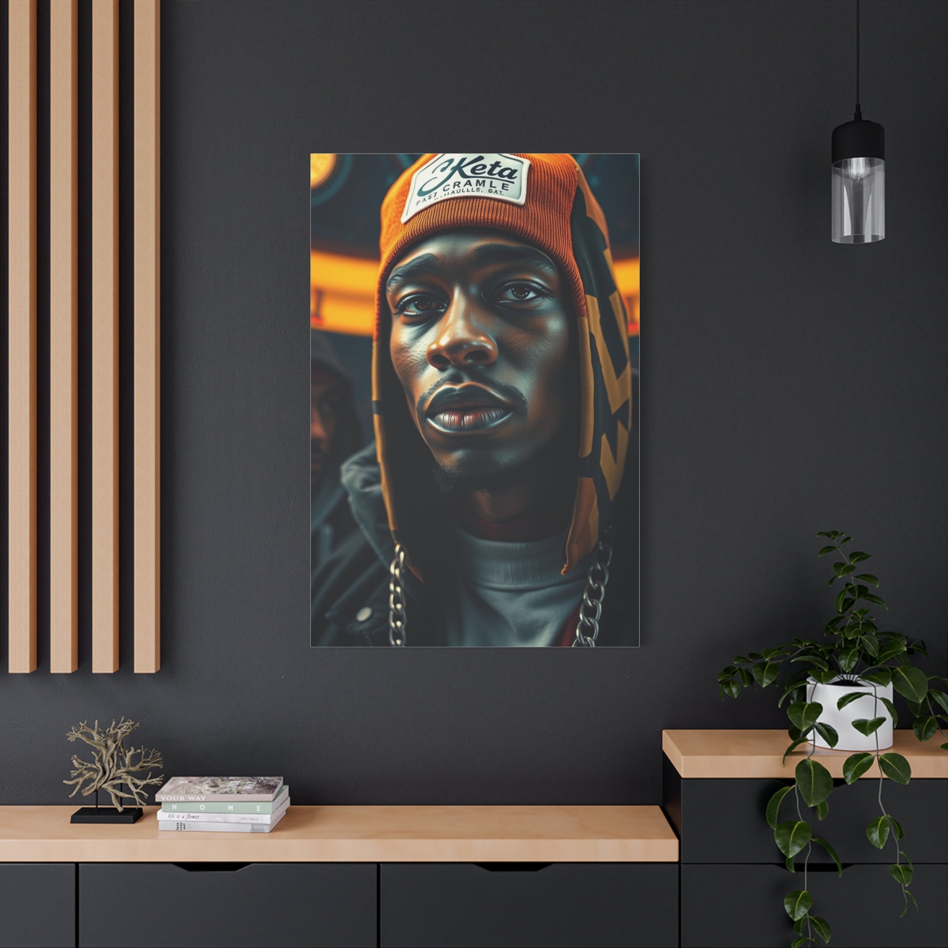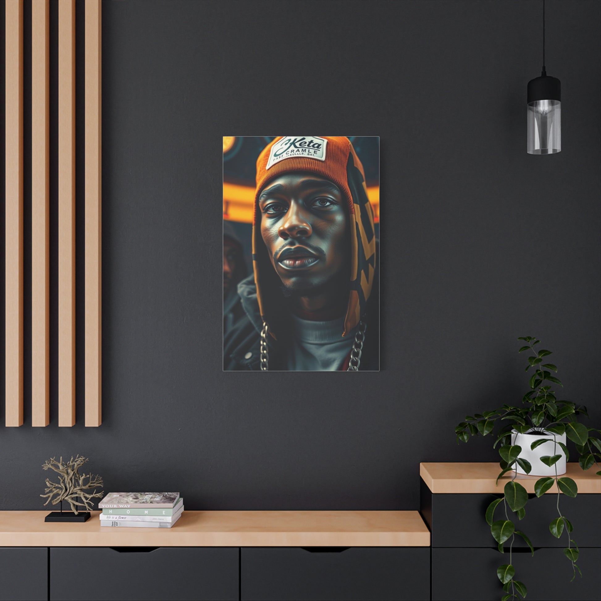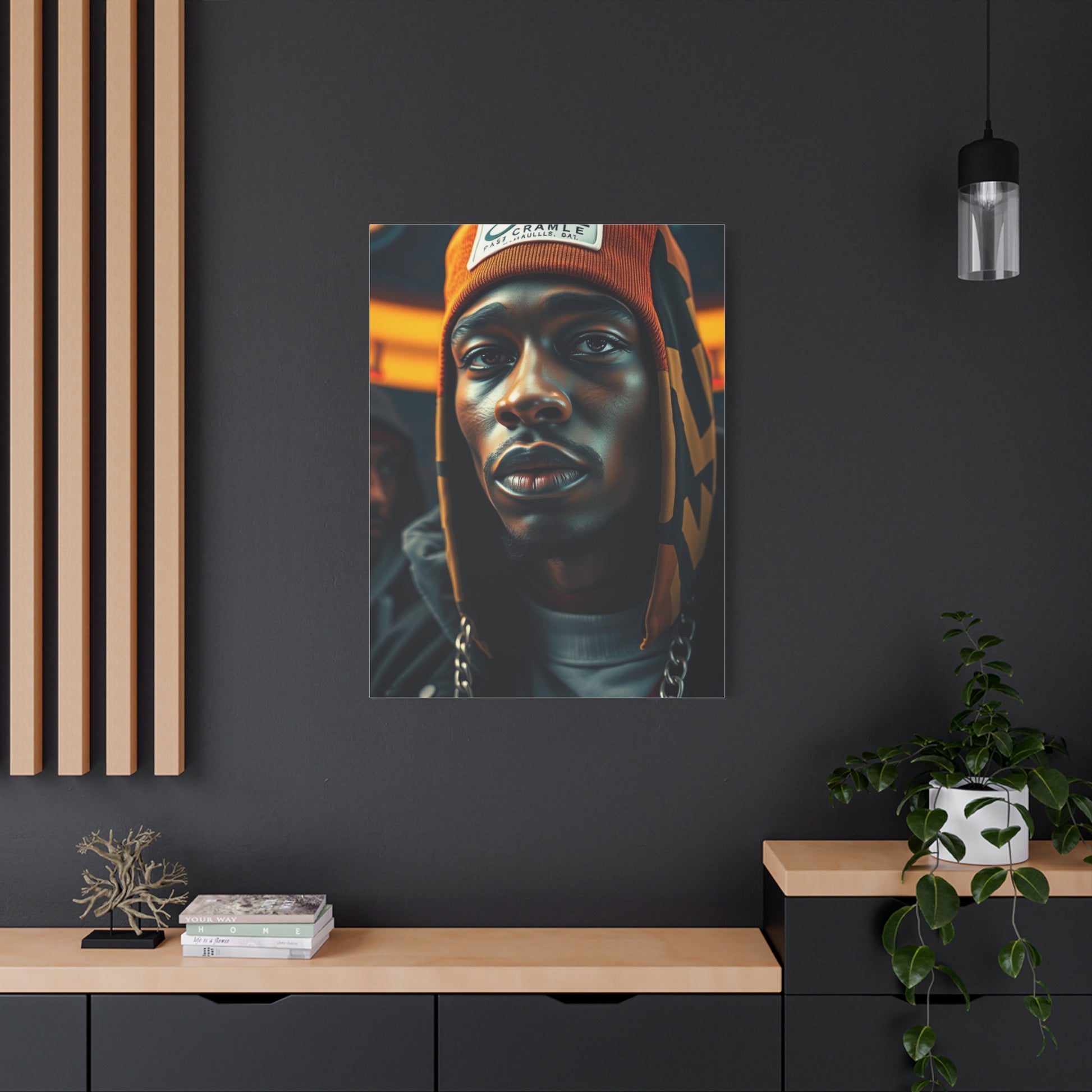 - Materials: cotton and polyester composite (canvas), pine wood (frame)