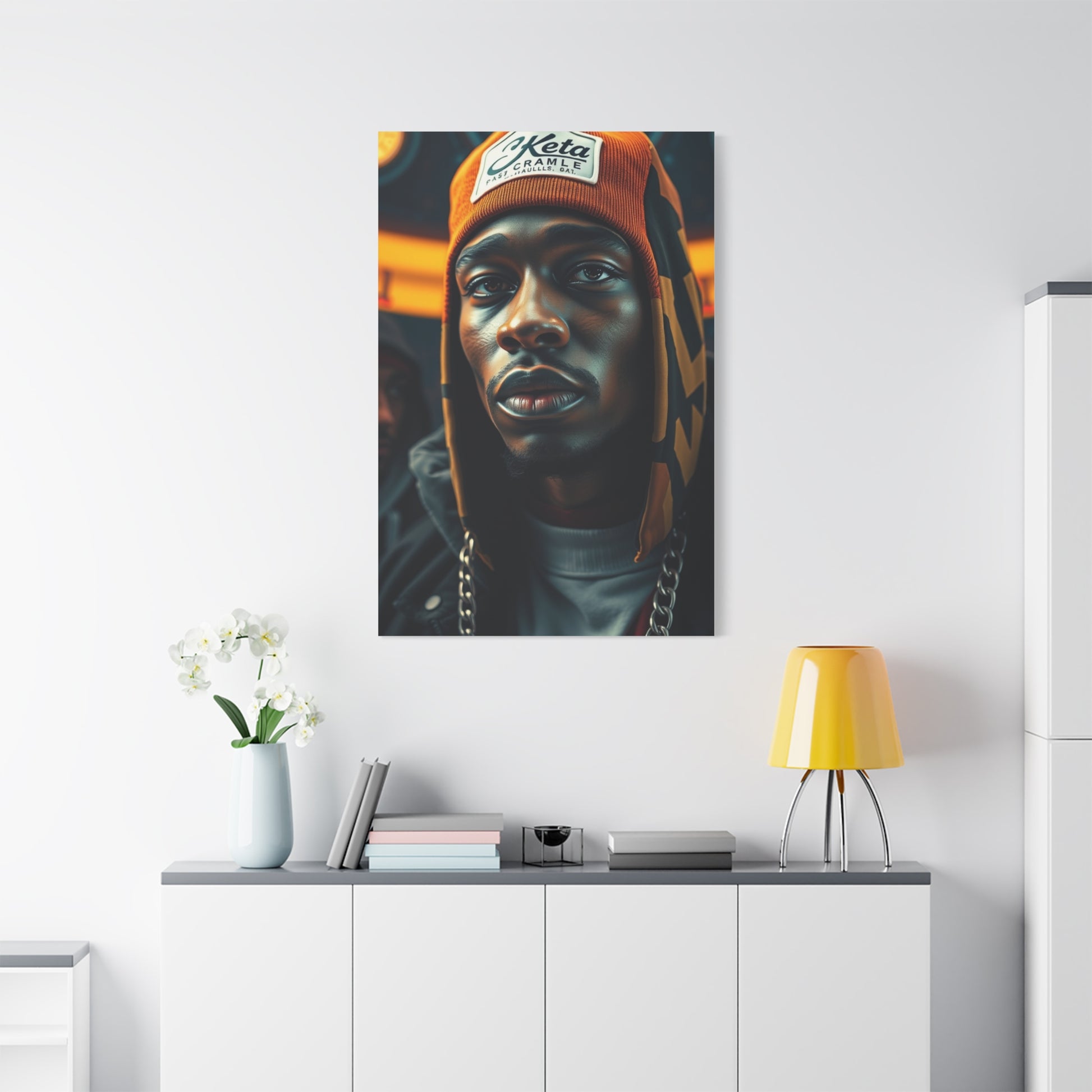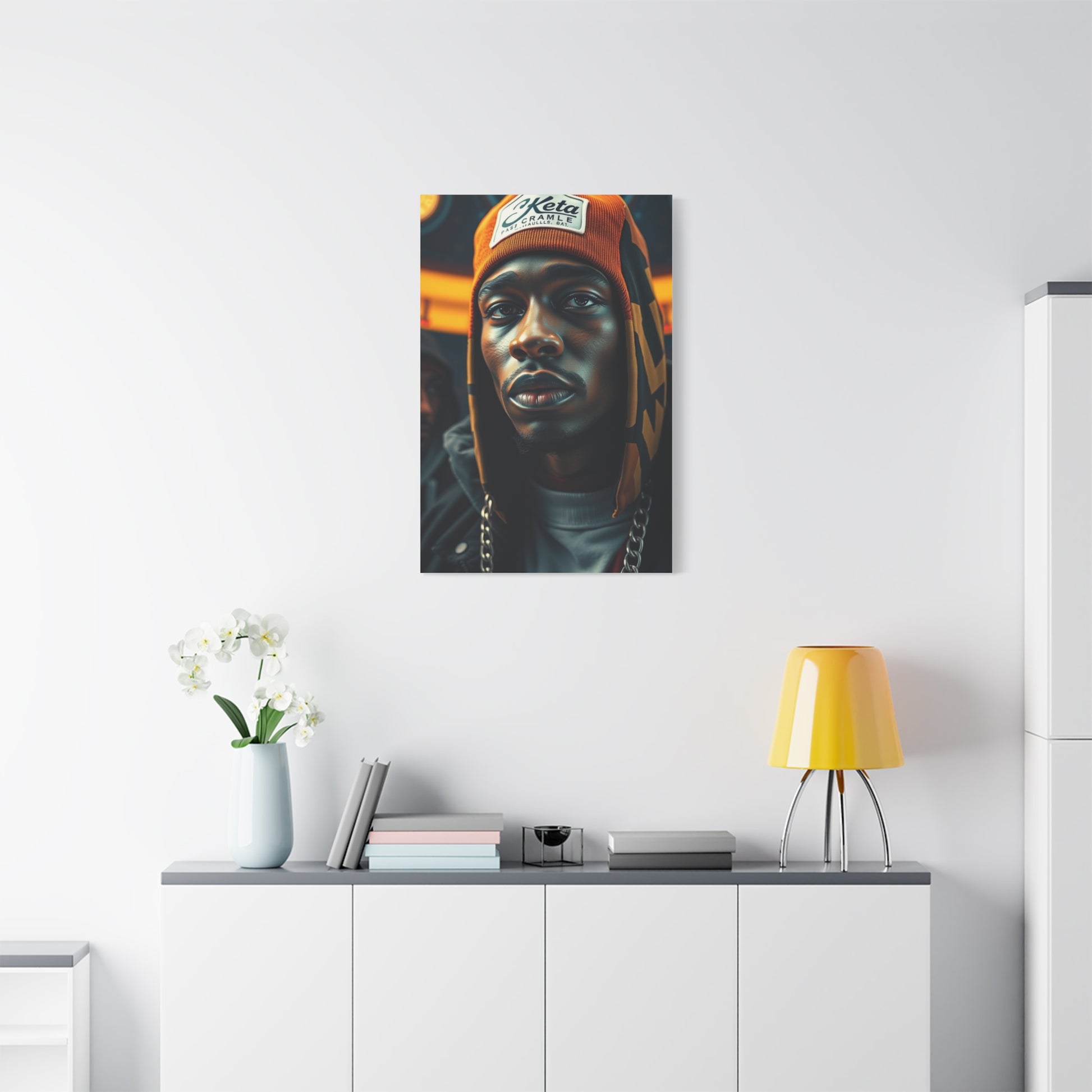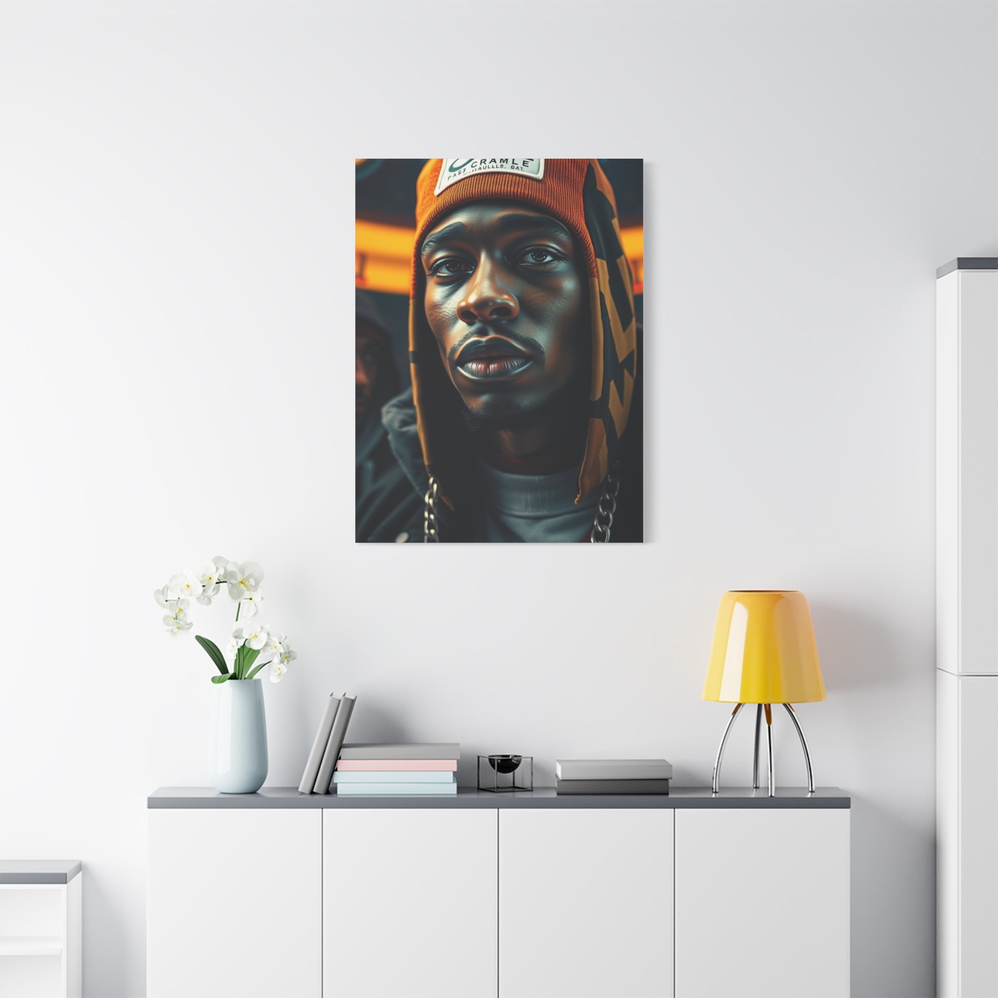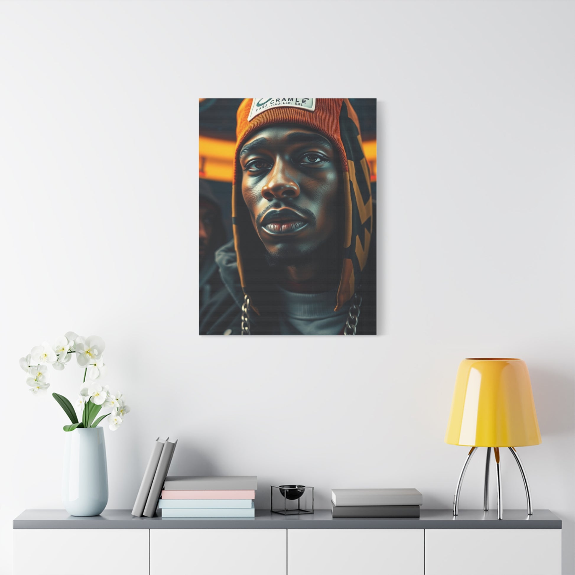 - Materials: cotton and polyester composite (canvas), pine wood (frame)