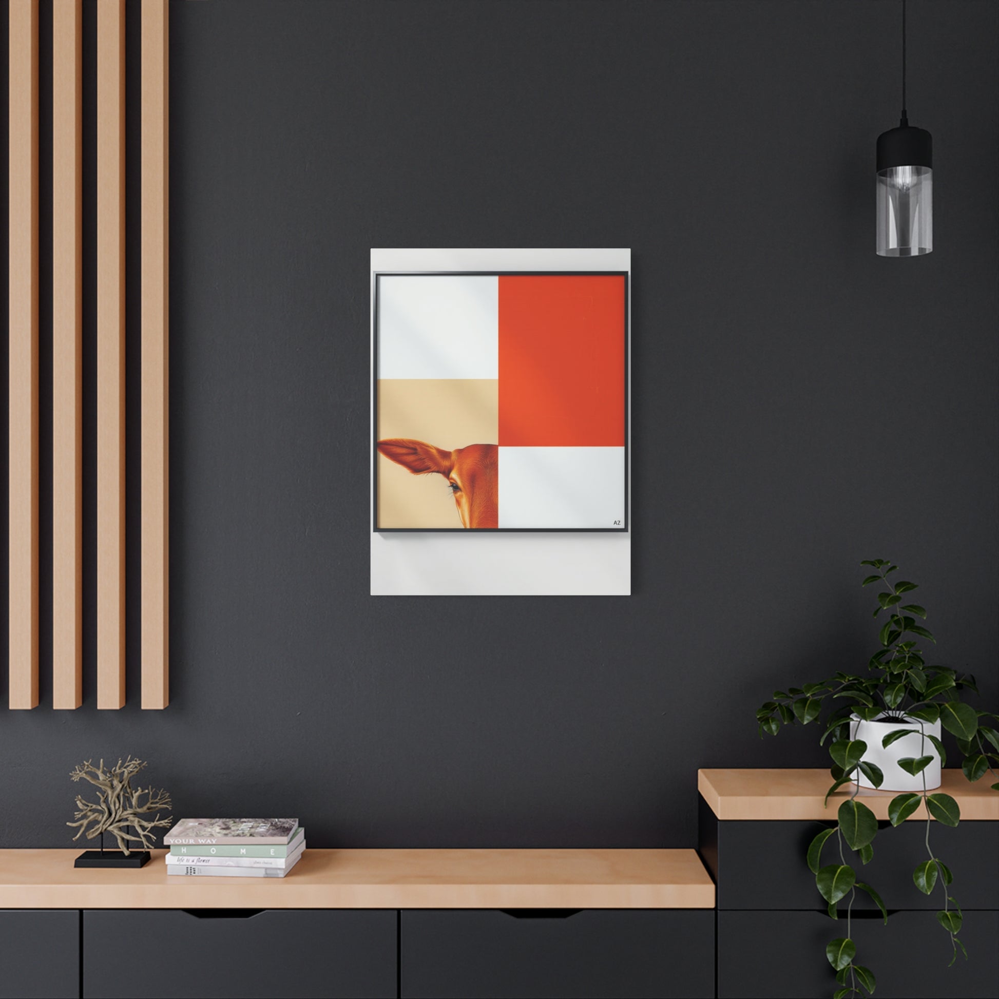 - Materials: cotton and polyester composite (canvas), pine wood (frame)