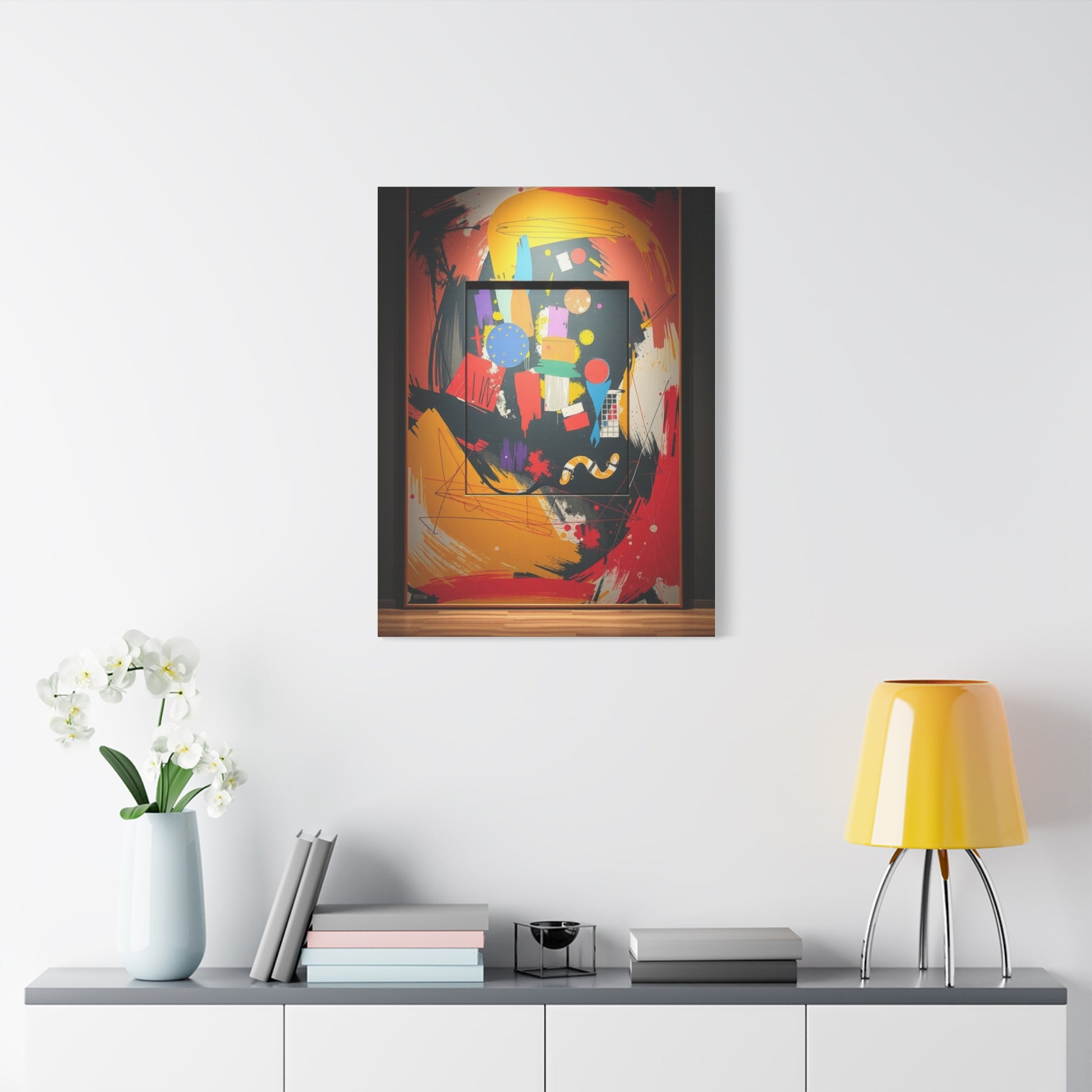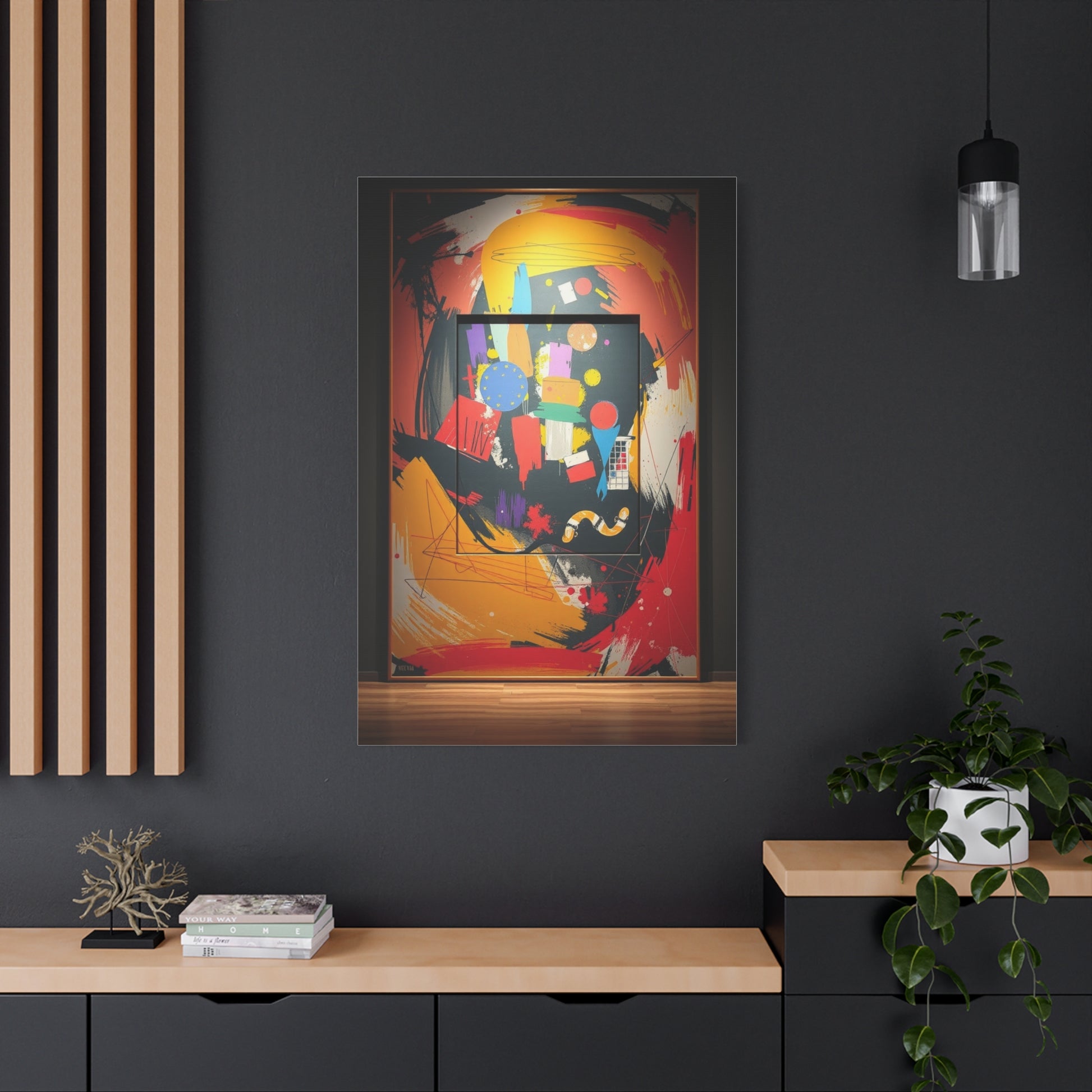 - Materials: cotton and polyester composite (canvas), pine wood (frame)