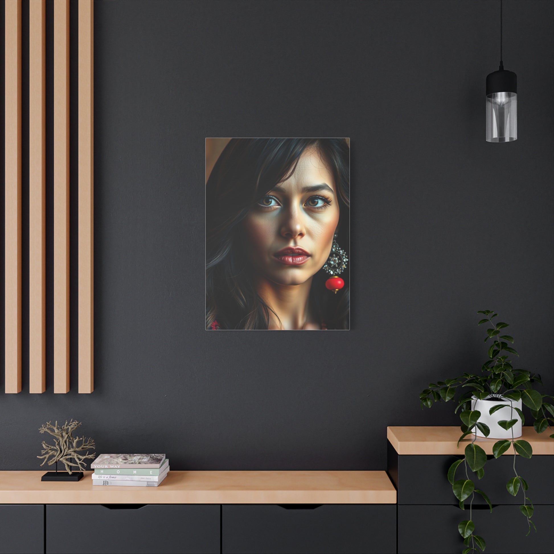 - Materials: cotton and polyester composite (canvas), pine wood (frame)