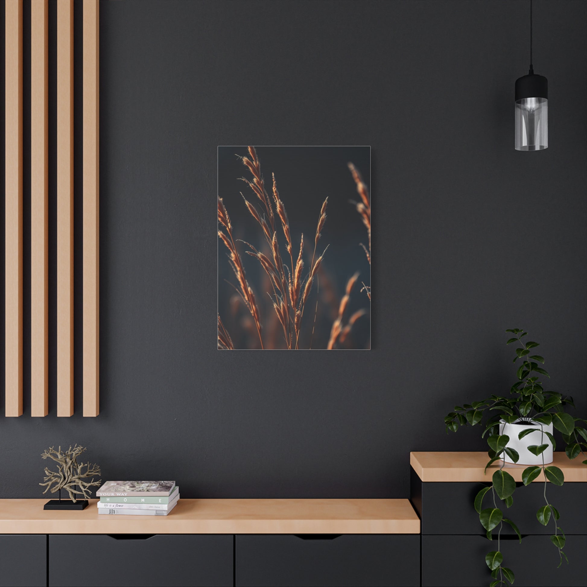 - Materials: cotton and polyester composite (canvas), pine wood (frame)