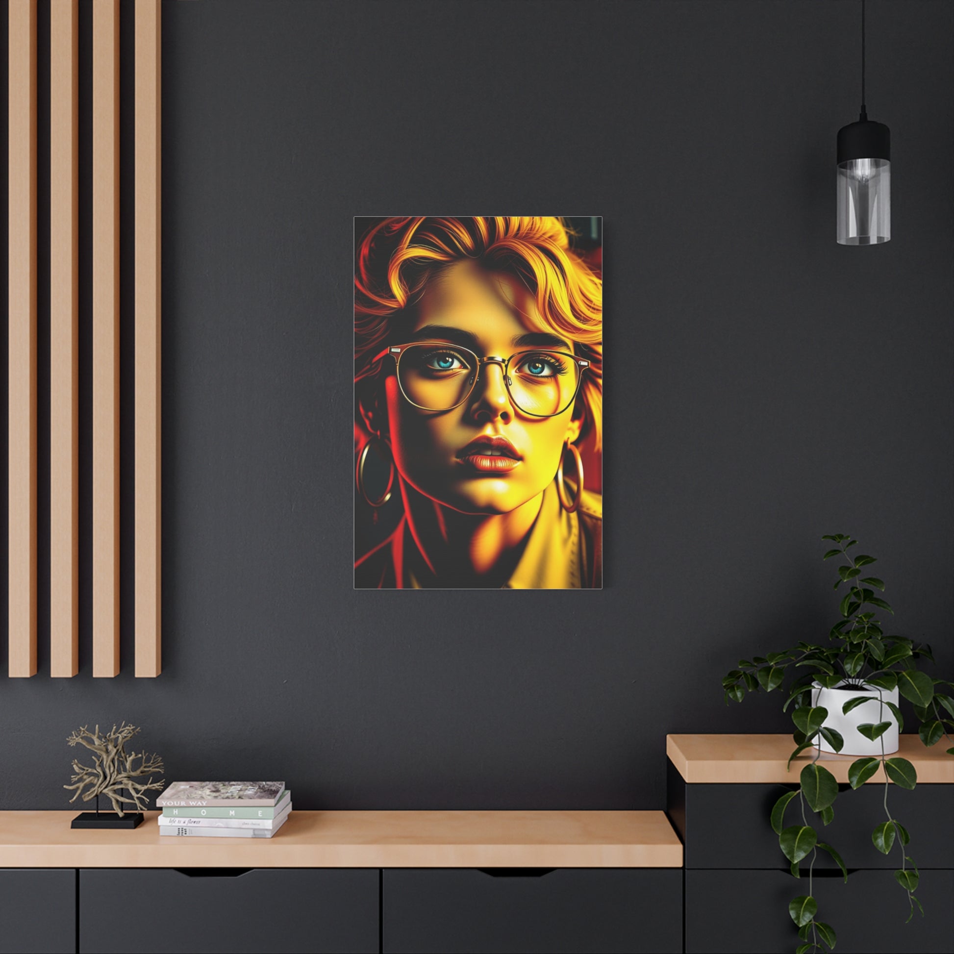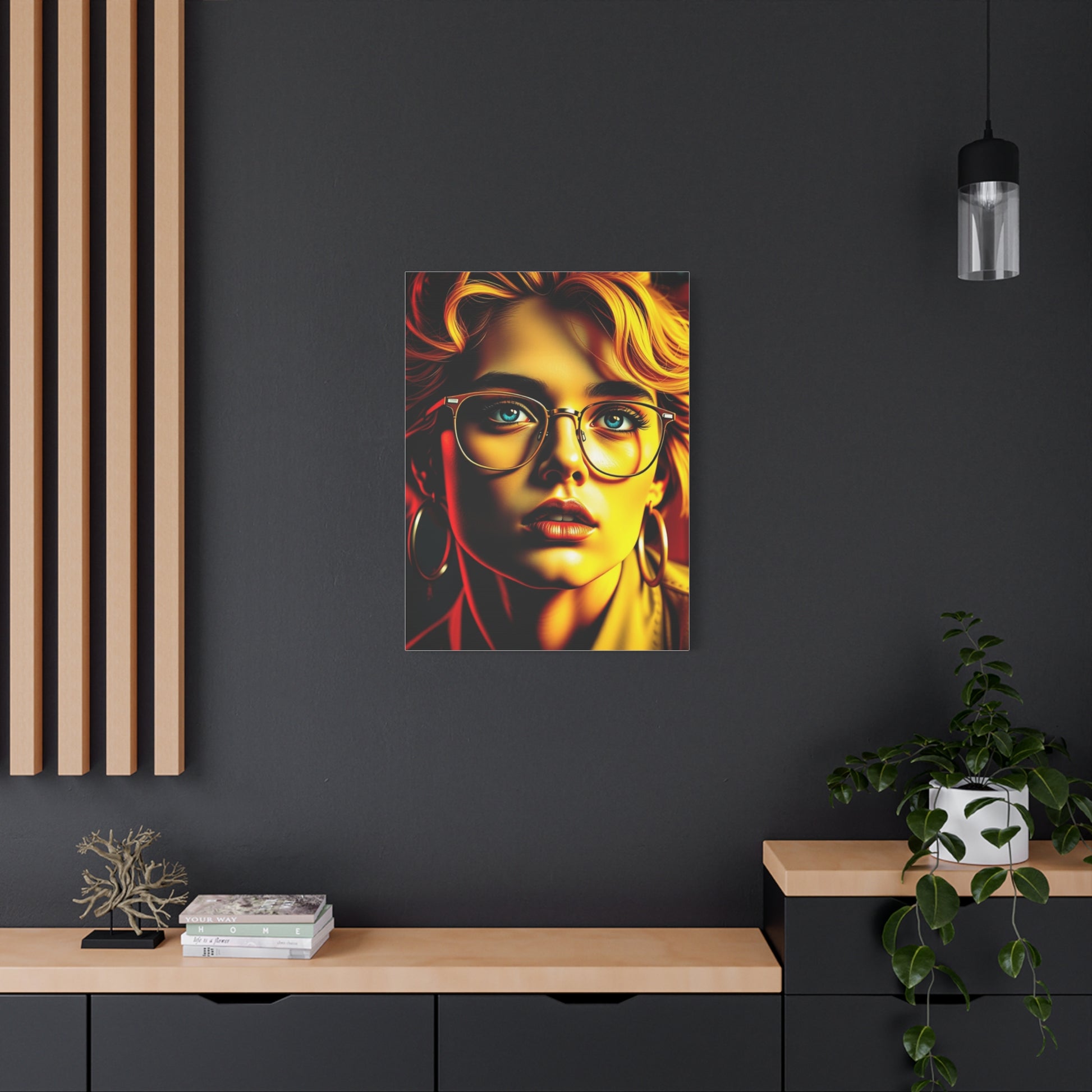 - Materials: cotton and polyester composite (canvas), pine wood (frame)