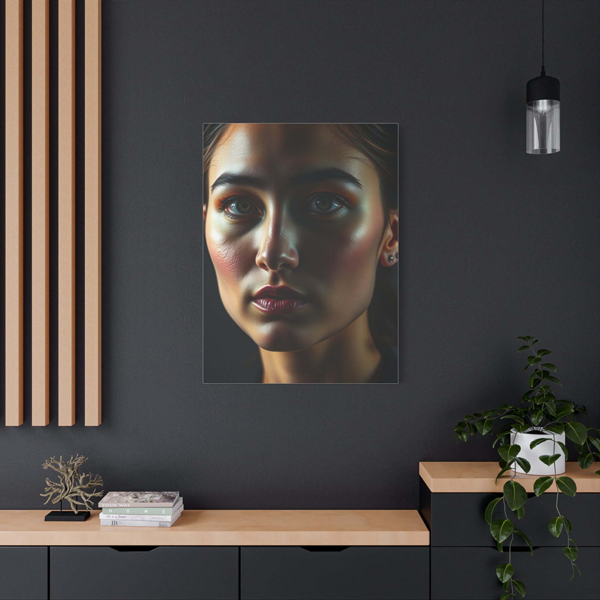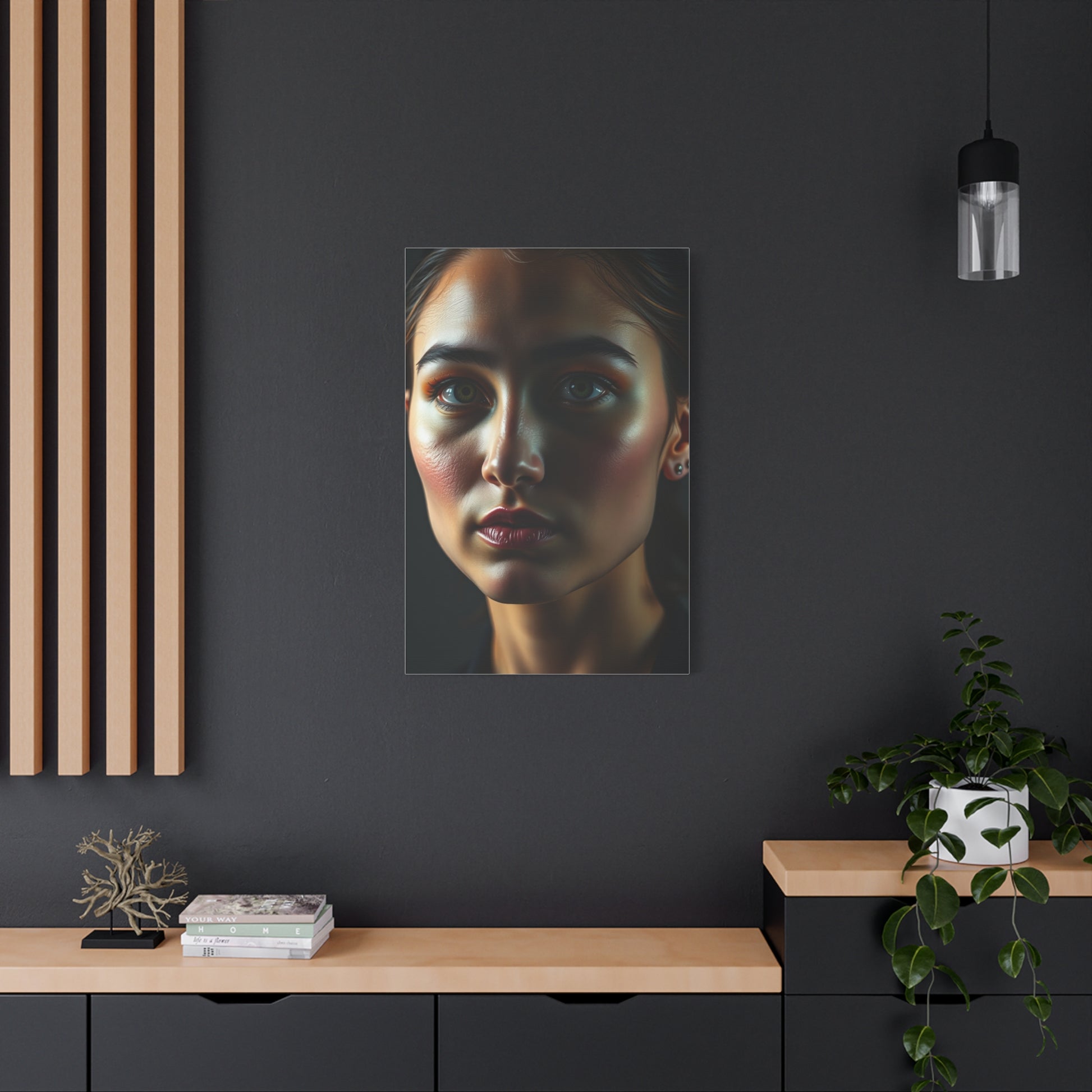 - Materials: cotton and polyester composite (canvas), pine wood (frame)