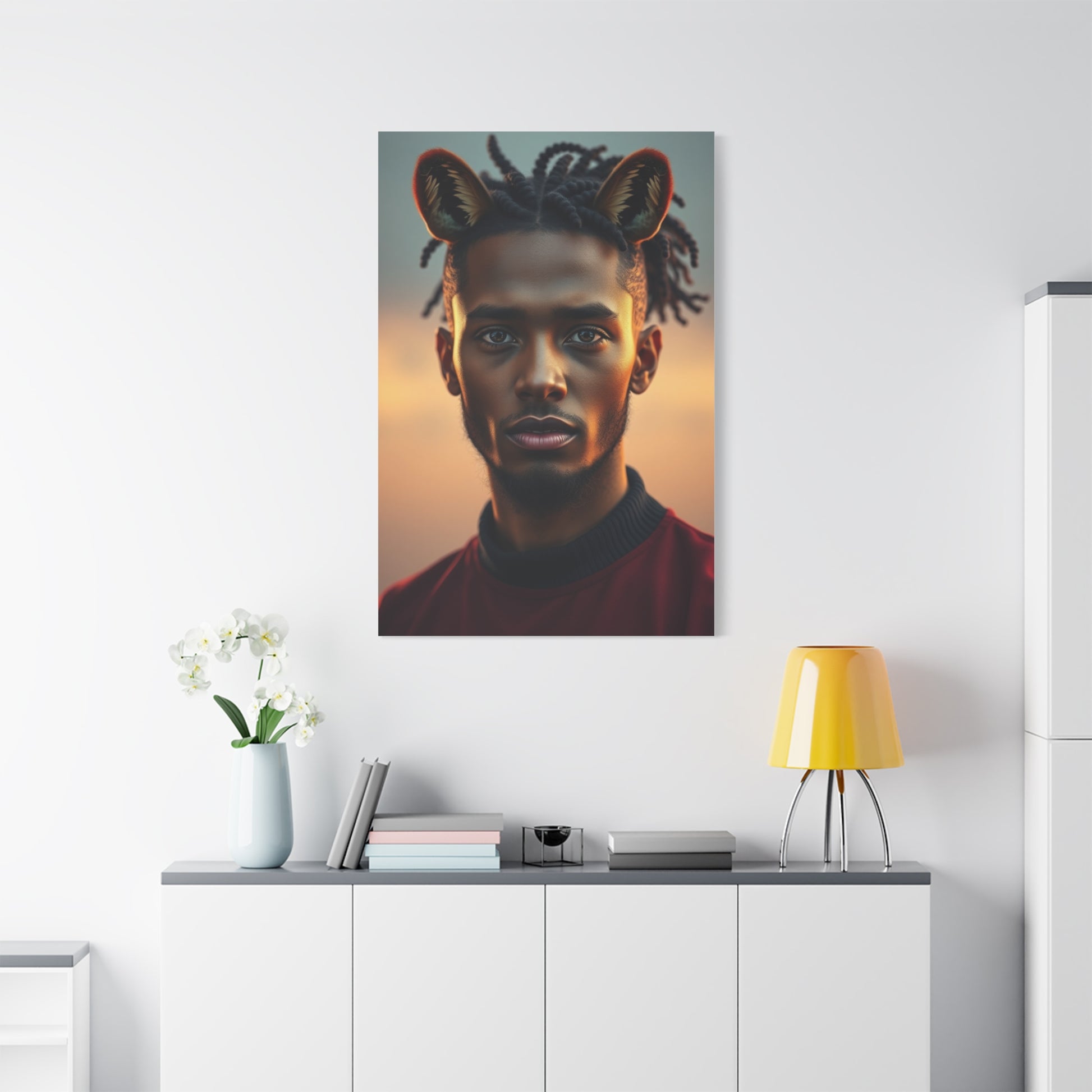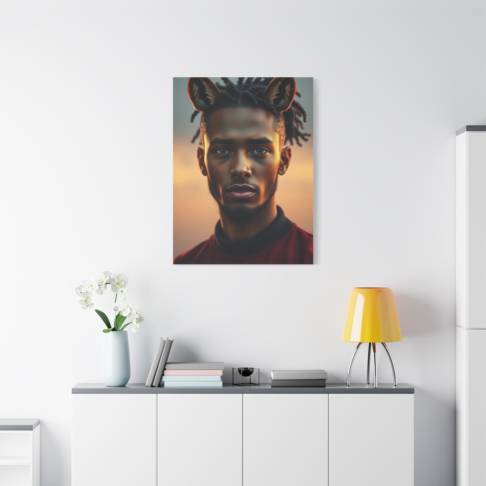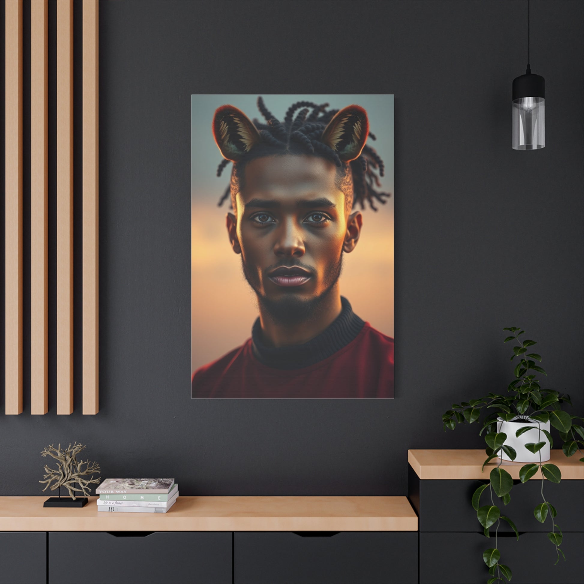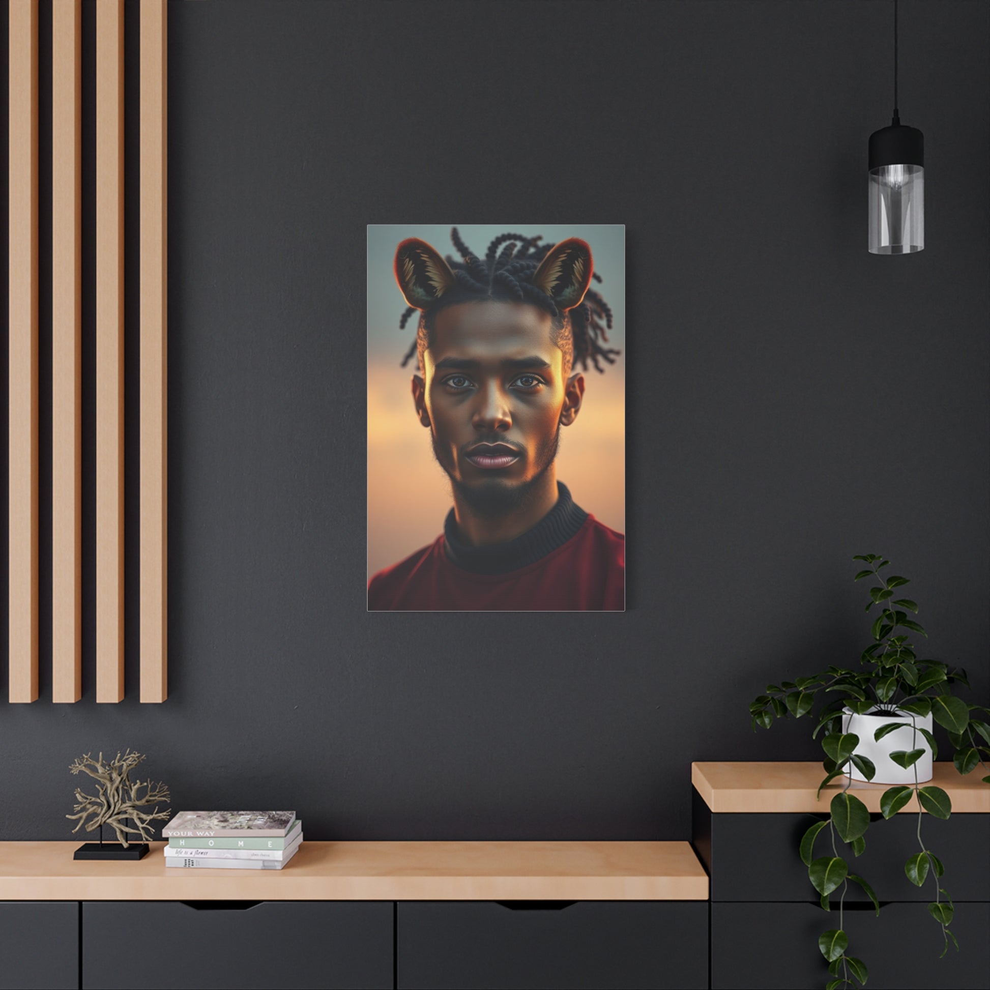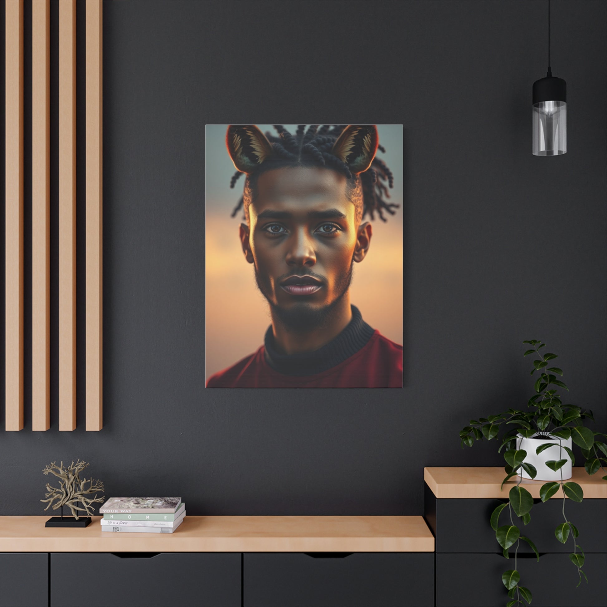 - Materials: cotton and polyester composite (canvas), pine wood (frame)
