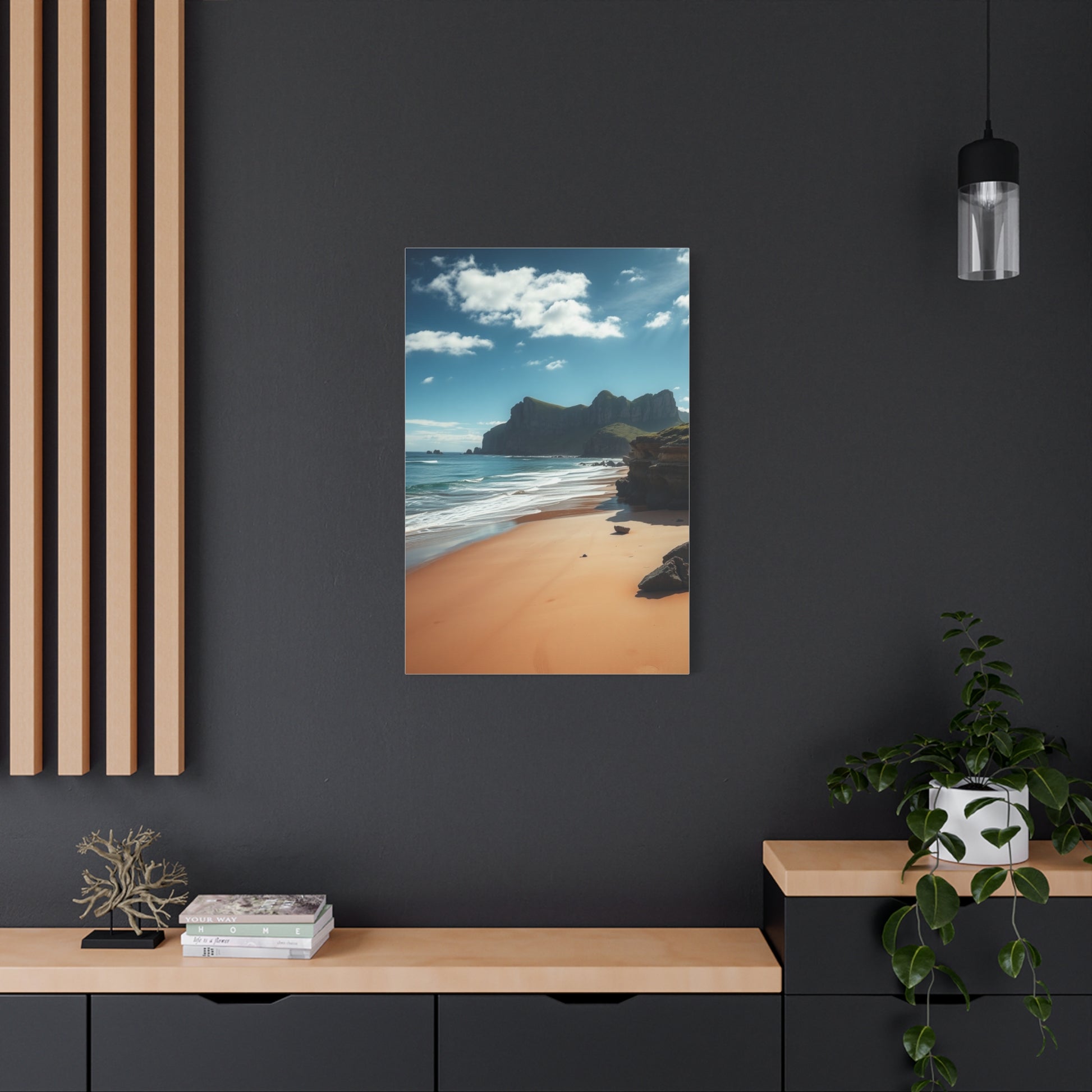- Materials: cotton and polyester composite (canvas), pine wood (frame)