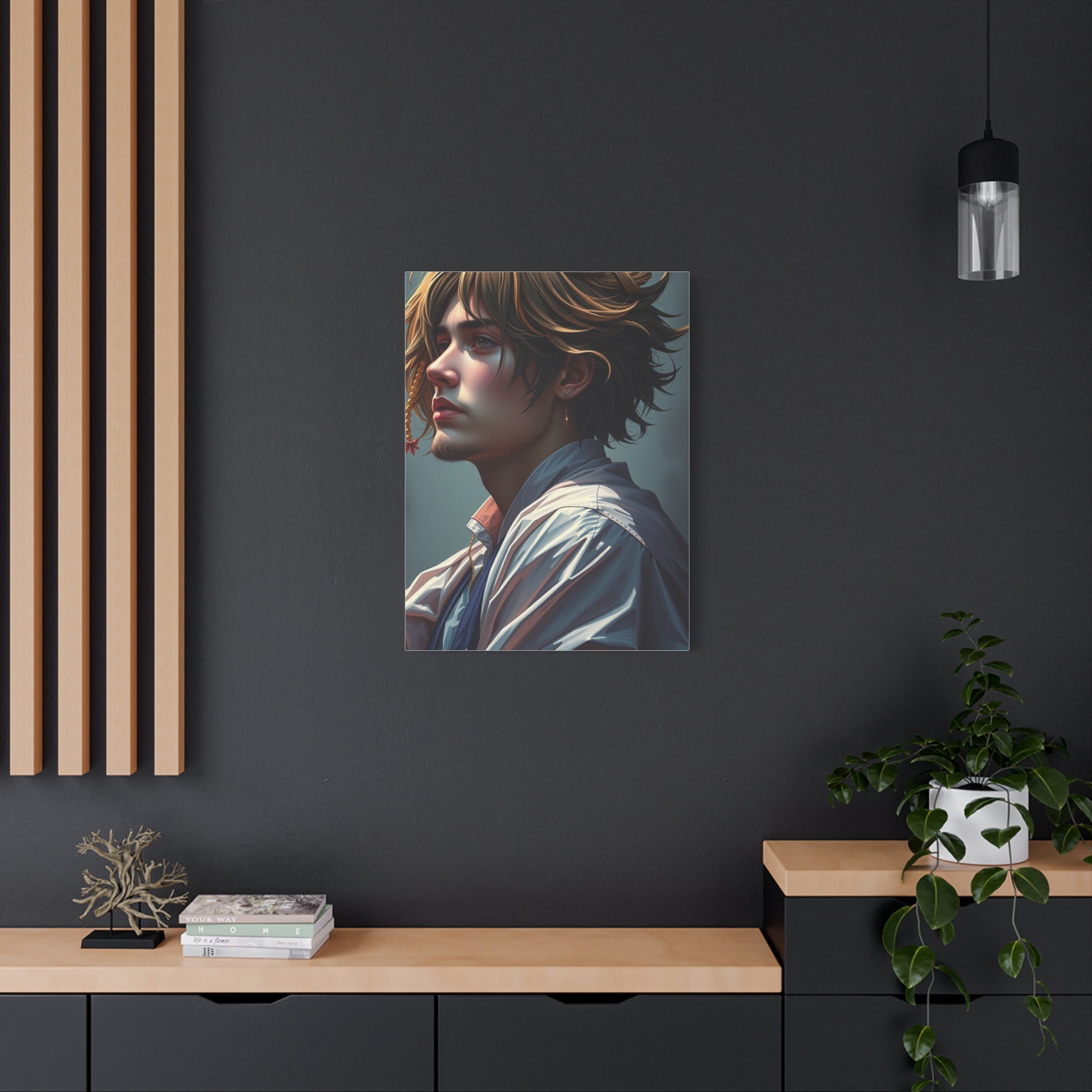 - Materials: cotton and polyester composite (canvas), pine wood (frame)
