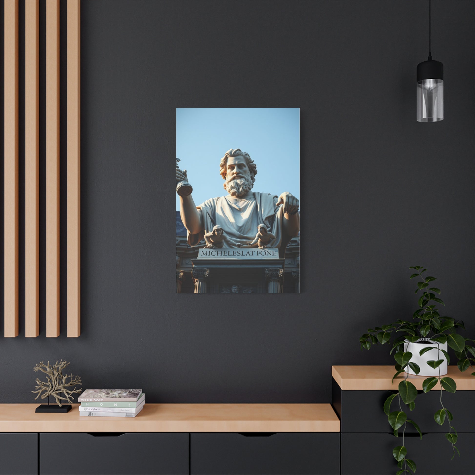 - Materials: cotton and polyester composite (canvas), pine wood (frame)
