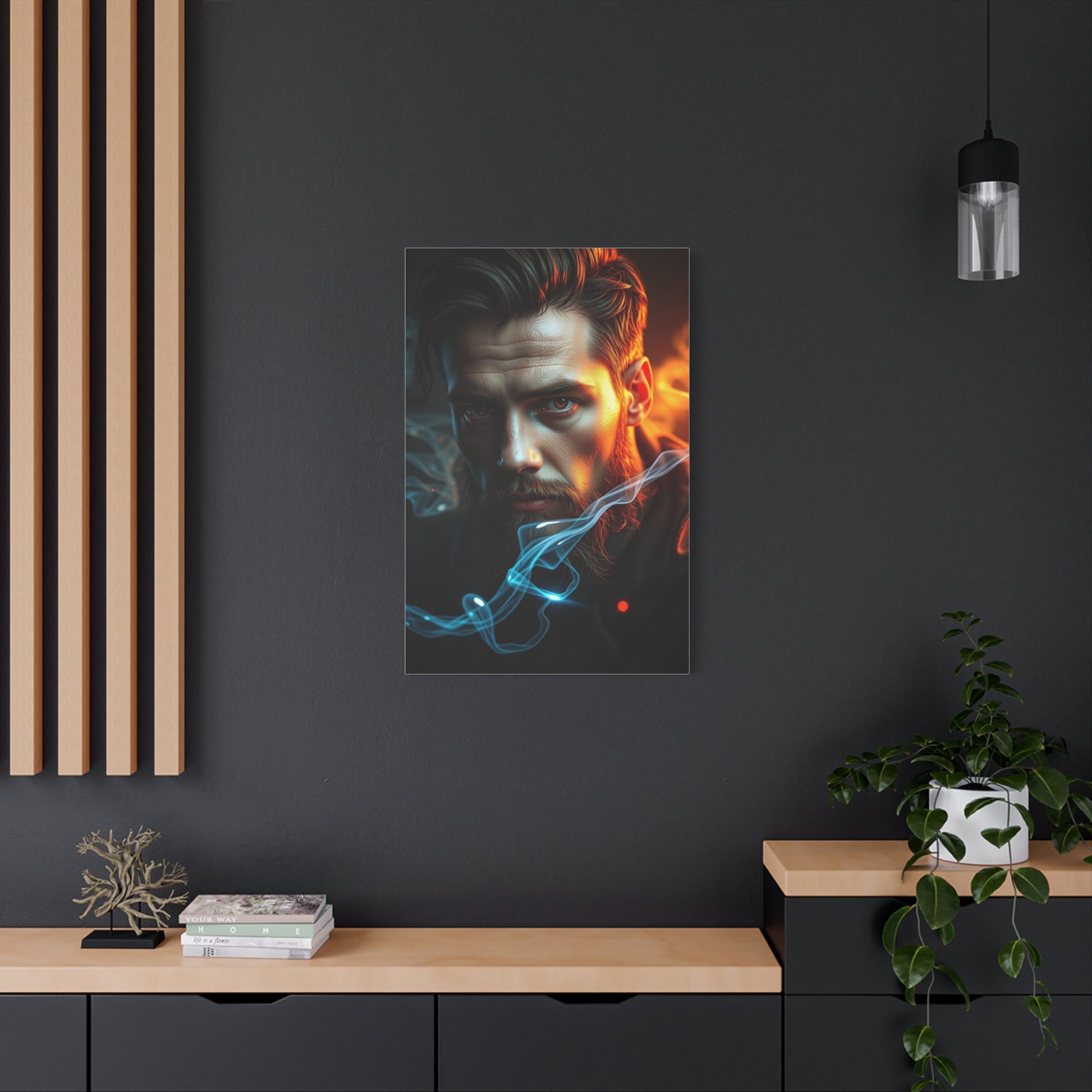 - Materials: cotton and polyester composite (canvas), pine wood (frame)